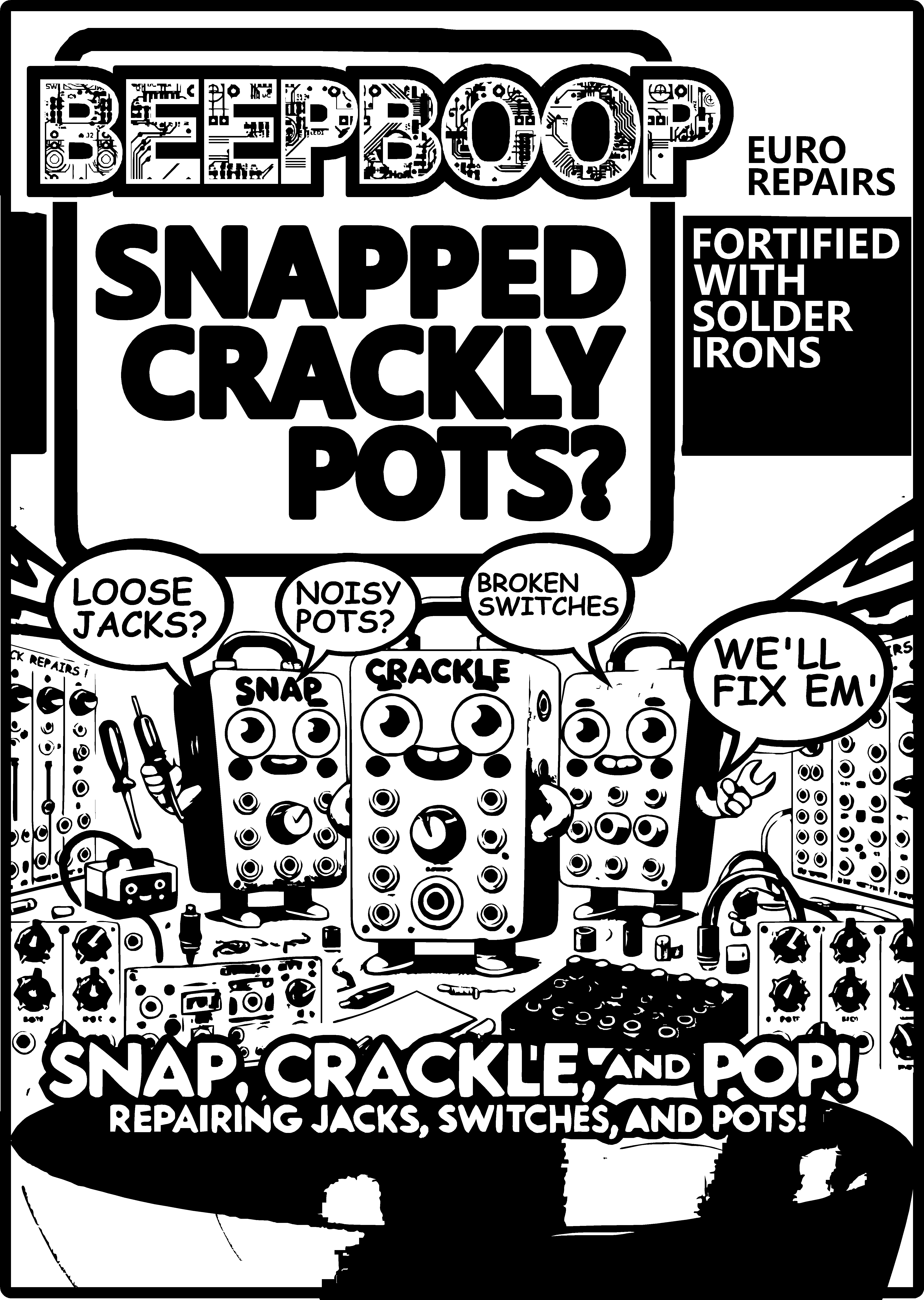 Beepboop Electronics is best known for tape based Eurorack modules but did you know we started out as a repair workshop? Well after a few years break we’ve teamed up with other local synth brands to be able to offer simple repairs for Eurorack modules and small desktop instruments! If you have a faulty potentiometer, switch, jack or other component which needs replacing we can help 🙂